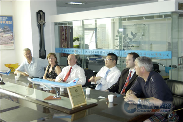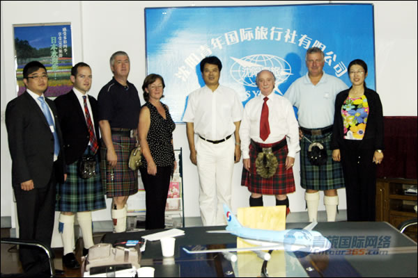 沈陽青旅董事長倪琛善先生與總經(jīng)理張新宇女士熱情接待蘇格蘭高地尼斯湖市場協(xié)會官員