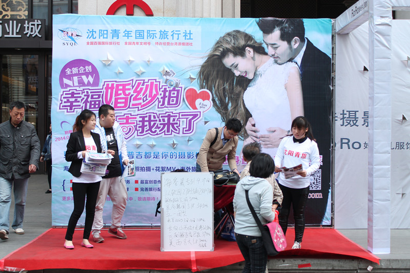 2014年4月25日,由遼寧廣播電視臺綜合頻道廣播主辦的“2014家有喜事——幸福來敲門”婚慶文化博覽會在沈陽中街商業城隆重舉行。沈陽青年國際旅行社副總經理童帥為開幕式致詞。青旅獨家推出的普吉島婚拍及五一游系列產品受到了廣大游客的熱切關注,現場咨詢報名火爆。本次婚慶文化博覽會將為期舉行10天,于2014年5月4日落下帷幕。